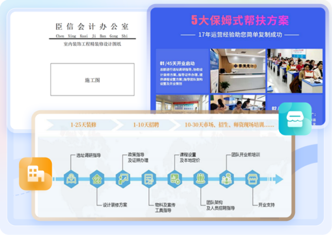 对合作伙伴进行为期45天的保姆式帮扶,保证完备式开业